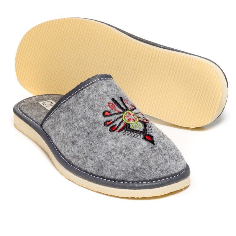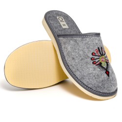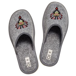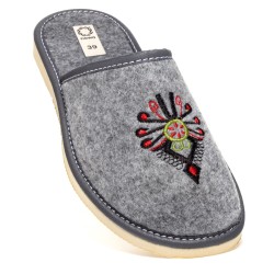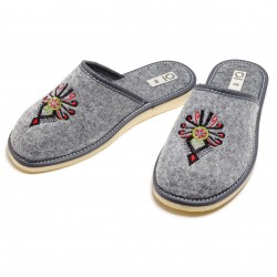Góralski wzór z haftowaną parzenicą nadaje naszym kapciom autentycznego góralskiego uroku. Ten unikalny haftowany wzór sprawi, że Twoje kapcie będą wyjątkowe i wyróżniające się spośród innych.
