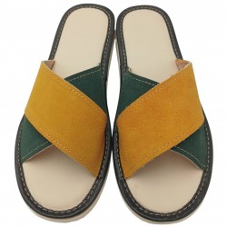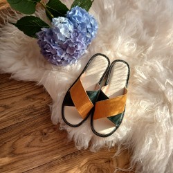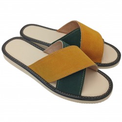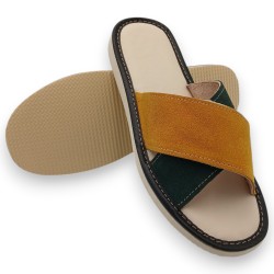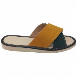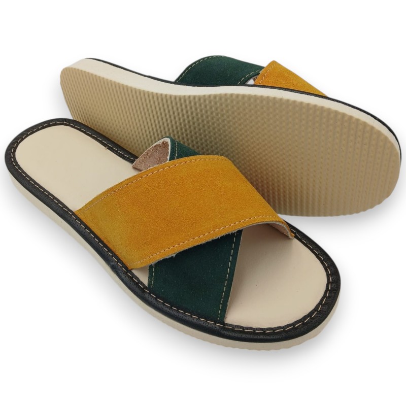 • Nowoczesny design – modne zestawienie musztardowego i ciemnozielonego koloru nadaje kapciom unikalny charakter. Krzyżujące się paski nie tylko świetnie wyglądają, ale też dobrze trzymają stopę.