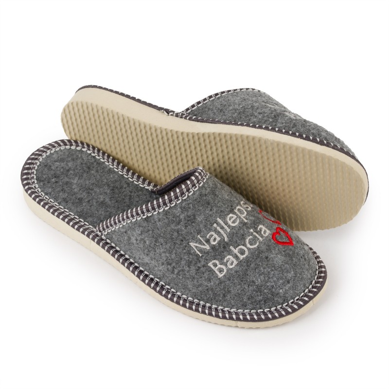 ⭐Szukasz idealnego prezentu na Dzień Babci? Oto kapcie, które sprawią, że Twoja Babcia poczuje się jeszcze bardziej wyjątkowa! Te okazjonalne kapcie z wyhaftowanym napisem "Najlepsza Babcia" oraz delikatnie wyhaftowanym serduszkiem na wierzchu to doskonały prezent, który wywoła uśmiech na twarzy Twojej Babci!⭐