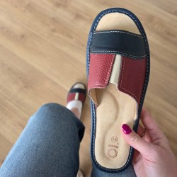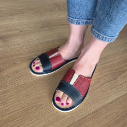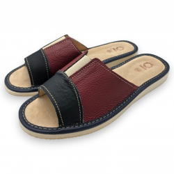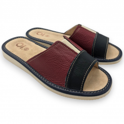 • Kapcie damskie z gumka, bordowe na szerszą stronę