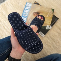 Wyrazisty motyw w kropki sprawia, że domowe obuwie nabiera charakteru i przyciąga uwagę od pierwszego spojrzenia.